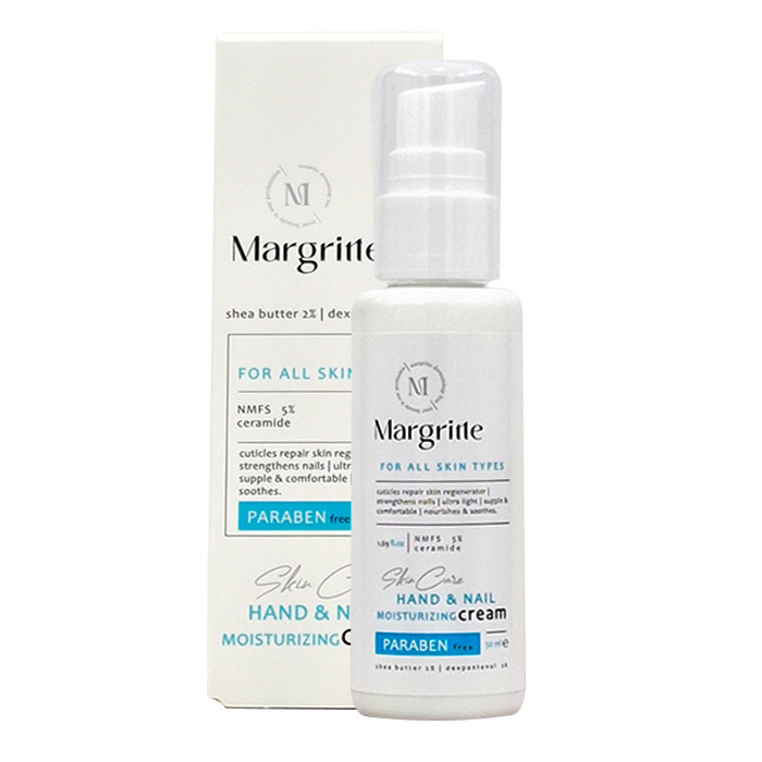 کرم دست مرطوب کننده قوی مارگریت به میزان کافی تمام رطوبت مورد نیاز پوست دست را حفظ کرده و از هدر رفتن ان جلوگیری می کند. ترکیبات غنی این کرم باعث تقویت و استحکام کوتیکول ناخن ها شده و همچنین به روشن شدن دست ها نیز بسیار کمک می کند. این کرم دارای بافت بسیار سبک و زود جذب بوده و فاقد پارابن و سیلیکون می باشد.