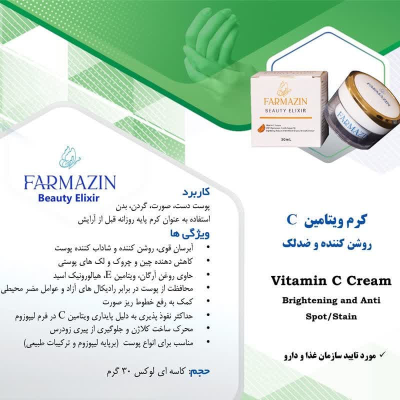 ویتامینها و مواد معدنی موجود : C , E , هیالورونیک اسید