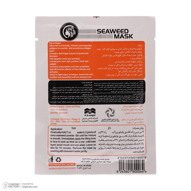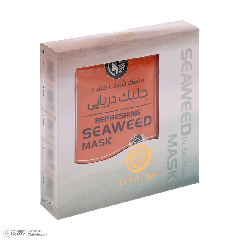ماسک شادابکننده صورت دکتر عیدی آلگا مدل جلبک دریایی، محصولی منحصربهفرد برای مراقبت از پوست است که با بهرهگیری از فناوری نانو بیوتکنولوژی و بیوپلیمرهای جلبکهای خلیج فارس طراحی شده است. این ماسک مناسب برای انواع پوست بوده و قابل استفاده بر روی پوست صورت و بدن، به جز نواحی حساس مانند دور چشم و لب است. این محصول با ترکیبات ویژه خود، به سرعت با تیرگی پوست مقابله کرده و موجب شفافیت و لطافت آن میشود. استفاده مرتب از این ماسک باعث افزایش اکسیژنرسانی به پوست، حذف آلودگیهای عمقی و بهبود متابولیسم سلولی شده و در نتیجه، رنگدانهسازی پوست را متعادل میسازد. یکی از ویژگیهای برجسته این ماسک، خاصیت ضد چروک آن است که به استحکام پوست کمک کرده و از افتادگی آن جلوگیری میکند. این محصول قادر است خطوط لبخند و پیشانی را پر کرده و موجب جوانتر به نظر رسیدن چهره در کوتاهترین زمان ممکن شود. اثرات اولیه آن در عرض چند دقیقه قابل مشاهده بوده و در بلندمدت، با افزایش میزان تولید کلاژن، استحکام پوست را تضمین میکند. همچنین با تأمین رطوبت مورد نیاز پوست، آثار خستگی را از چهره رفع کرده و طراوتی بینظیر به آن میبخشد.