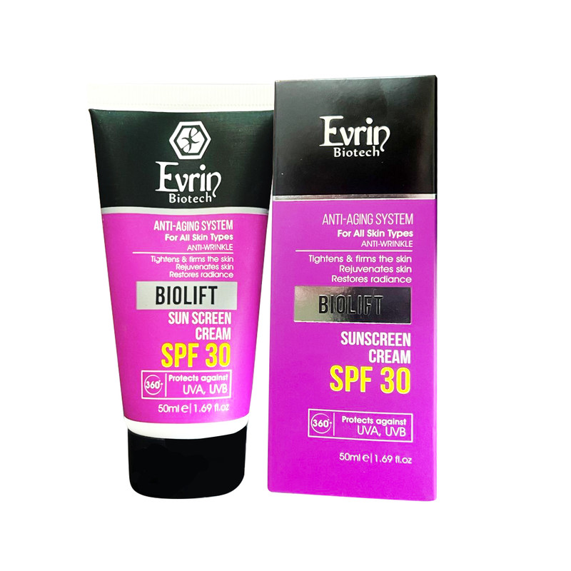 کرم ضد آفتاب بدون رنگ اورین +SPF 30 مدل biolift ‌مناسب انواع پوست حجم 50 میلی‌لیتر