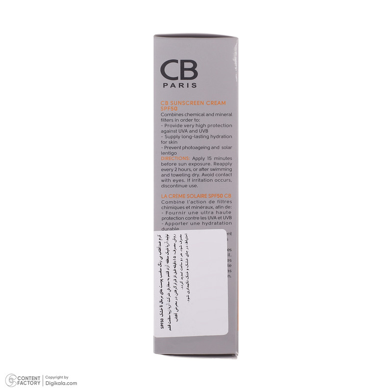 کرم ضد آفتاب بدون رنگ سی بی پاریس SPF 50 مدل 054 ‌مناسب پوست‌های معمولی و خشک حجم 40 میلی‌لیتر