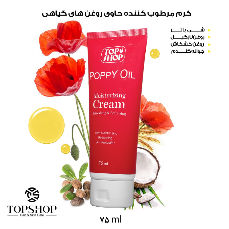 امروزه با وجود محصولات شیمیایی فراوان و متعدد، فراورده های گیاهی از اهمیت فراوانی در میان مردم برخوردار هستند. روغن های گیاهی که به داشتن آنتی اکسیدان ها، ویتامین ها و مواد مغذی معروف هستند، خواصی نظیر آبرسانی، نرم کنندگی، ضد التهابی و التیام بخشی را ارائه می دهند. کرم مرطوب کننده روغن های گیاهی تاپ شاپ با بهره گیری از خواص عالی روغن های خشخاش، شی باتر، روغن نارگیل و روغن دانه گندم، محصولی با کیفیت جهت مراقبت از پوست را در اختیار مصرف کنندگان قرار می دهد.