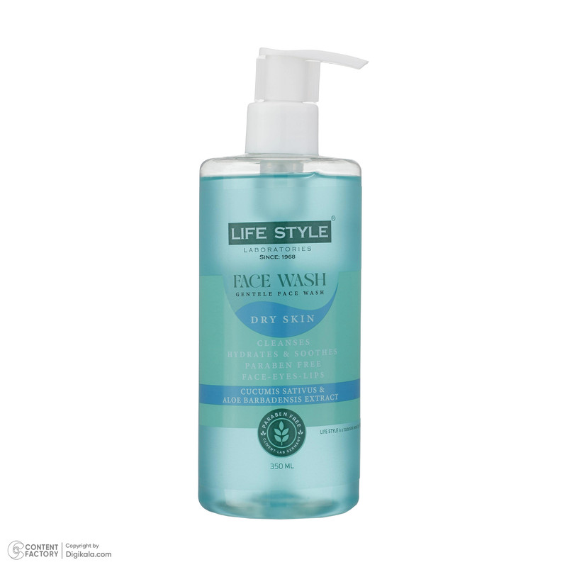 ژل شستشوی صورت لایف استایل ( Life Style ) مخصوص پوست خشک و حساس آلودگی ها و مواد آرایشی از روی پوست رو کاملاً پاک می کند و در عین حال با سوزش، خشکی، خارش، پوسته پوسته شدن و قرمزی پوست مقابله می کند که دلیل آن هم ترکیبات آبرسان و ضدالتهابی هست که دقیقاً مختص افراد با پوست خشک و حساس فرموله شده است و نرمی و طراوت به پوست می بخشد از ترکیبات گیاهی به کار رفته در ژل شستشوی صورت لایف استایل ( Life Style ) مخصوص پوست خشک و حساس می توان به عصاره آلوئه ورا،خیار اشاره کرد که باعث آبرسانی عمقی پوست شده و مانع خروج رطوبت پوست می شود و سلول هایه مرده پوست رو برداشته و باعث بازسازی و کلاژن سازی پوست خواهد شد و همچنین با خاصیت آنتی اکسیدانی که دارد از پوست در مقابل رادیکال های آزاد محافظت می کند در فرمولاسیون این ژل شستشوی صورت از دکسپنتنول( ویتامین B5) بهره برده شده لذا مانع زبری و تحریکات جزئی پوست می شود لذا افراد با مشکلات پوستی که برگرفته از خشکی پوست هست( همچون اگزما و ...) می توانند از این ژل شستشوی صورت لایف استایل ( Life Style ) استفاده کنند.در ضمن برخلاف اکثر محصولات موجود در بازار، ترکیبات گیاهی به کار رفته با دوز بالا می باشد تا خواص آن کاملآ برای مصرف کننده مشهود باشد یکی دیگر از مشخصه ها مهم ژل شستشوی صورت لایف استایل (Life Style) مخصوص پوست خشک و حساس حذف عوامل مضر پوست(از جمله پارابن، دی اکسان و...) است و اینکه از جدیترین نوع نگهدارنده حاوی (ایزوتیازلنیون) استفاده شده است که بی ضرر بودن و ایمنی آنها کاملآ اثبات شده است شایان ذکر است تمامی محصولات برند لایف استایل (Life Style)در لابراتوار تخصصی آرایشی و بهداشتی موسسه تحقیقات واکسن و سرم سازی ایران تولید شده که تاریخچه برند لایف استایل به لابراتوار دکتر کافمن فارما (L.L.C) در فرانسه باز میگردد که در زمینه شناخت خواص گیاهان با بهره گیری از دانش طب گیاهی شرق و با فناوری روز،محصولات مراقبتی و درمانی را با فرمول هایی ویژه تهیه و در دسترس قرار داده است.