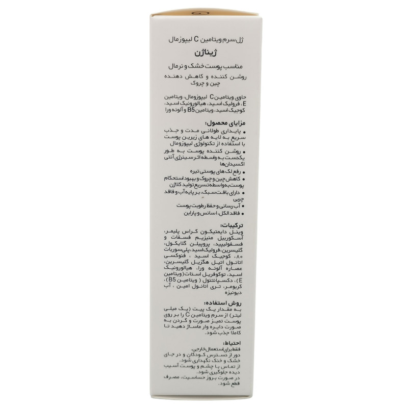 ژل سرم ویتامین سی ژیناژن با بهره گیری از ویتامین C به فرم لیپوزومال در افزایش سنتز کلاژن و کنترل رنگدانه های پوستی تاثیر می گذارد و در محو شدن آثار لک و تناژ رنگی پوست موثر است.