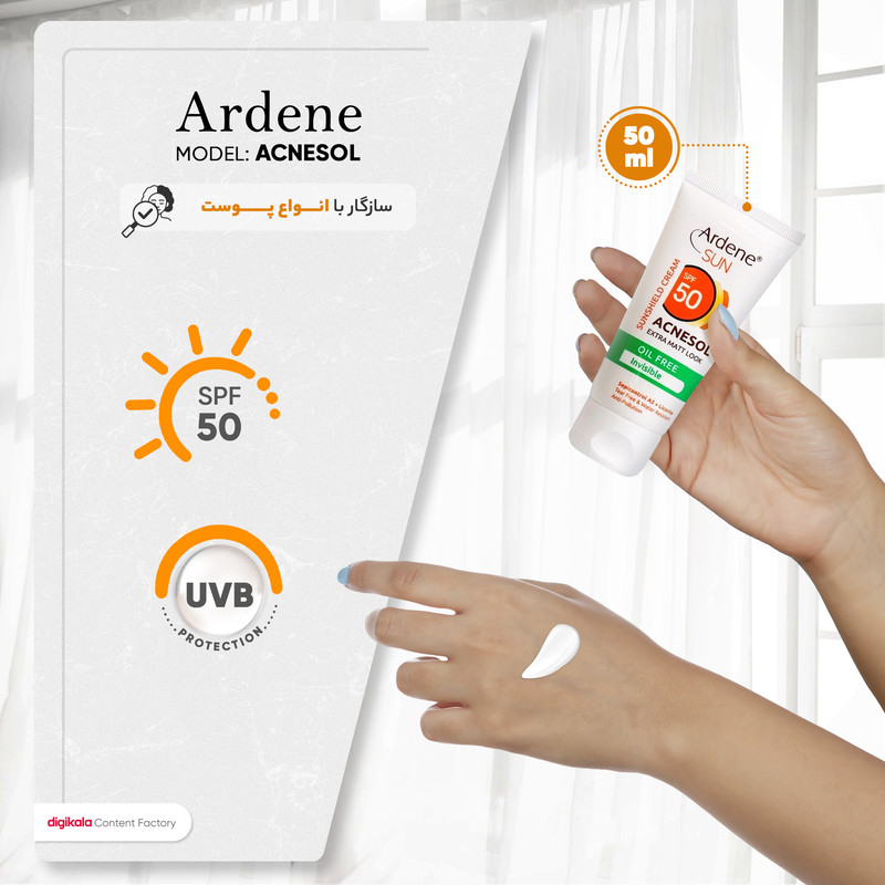 کرم ضدآفتاب آردن با SPF 50 و ویژگیهای ضد جوش و آکنه، یک راهحل ایدهآل برای محافظت از پوست در برابر اشعههای خورشیدی مضر و همزمان کنترل مشکلات پوستی است. این کرم با SPF 50، بالاترین سطح محافظت را در برابر اشعههای خطرناک خورشیدی فراهم میکند و برای استفاده روزمره مناسب است. این کرم که برای استفاده روی صورت و دور چشم طراحی شده، با توجه به ترکیبات غیررنگی و ماتکنندهاش، انتخابی عالی برای بانوان و آقایانی است که به دنبال محافظت بالا در برابر اشعههای خورشیدی هستند. این کرم با کاهش ترشح چربی و پاکسازی منافذ، به مبارزه با عوامل ایجادکننده جوش کمک میکند. با توجه به وزن بسیار کم و بستهبندی کارآمد، حمل آن آسان است و میتواند همراه دائمی شما در فضای بیرون باشد. توصیه میشود که این کرم حدود 15 دقیقه قبل از خروج از منزل استفاده شود تا به خوبی جذب پوست شود. در صورت اقامت طولانیمدت در زیر نور مستقیم آفتاب، هر دو ساعت یک بار کرم را تجدید کنید.