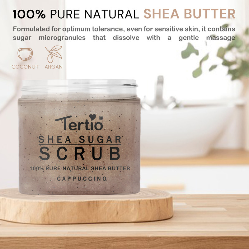 سلولهای مرده پوست، چربیهای طبیعی بدن، استفاده از لوازم آرایشی و گرد و غبار و ذرات آلوده در هوا میتوانند منافذ پوست شما را ببندند. با استفاده از اسکراب شکری لایه بردار پوست ترتیو مدل کاپوچینو شی باتر، میتوانید همه این ذرات را پاک کنید و که باعث می شود پوست شما روشنتر و شفافتر به نظر برسد و احساس تمیزی بیشتری داشته باشید. اسکراب شکری پوست Tertioبرای لایهبرداری پوست بدن طراحی شده و حاوی ذرات ریز و مواد مغذی از جمله شی باتر است که هدف آن از بین بردن سلولهای مرده و بهبود بافت و درخشش پوست است. با استفاده از این اسکراب، پوست نرمتر و لطیفتر شده و نفوذپذیری آن برای محصولات مرطوبکننده افزایش مییابد که باعث بهبود گردش خون شده و احتمال بروز جوشهای زیرپوستی را کاهش مییابد. اسکراب بدن ترتیو حاوی روغنهای آرگان، نارگیل، شی باتر و مواد مرطوبکننده است که به حفظ رطوبت و آبرسانی پوست کمک میکند.