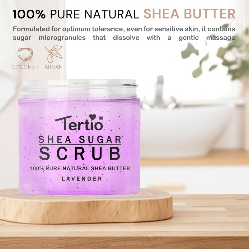 سلولهای مرده پوست، چربیهای طبیعی بدن، استفاده از لوازم آرایشی و گرد و غبار و ذرات آلوده در هوا میتوانند منافذ پوست شما را ببندند. با استفاده از اسکراب شکری لایه بردار پوست ترتیو مدل لوندر شی باتر، میتوانید همه این ذرات را پاک کنید و که باعث می شود پوست شما روشنتر و شفافتر به نظر برسد و احساس تمیزی بیشتری داشته باشید. اسکراب شکری پوست Tertioبرای لایهبرداری پوست بدن طراحی شده و حاوی ذرات ریز و مواد مغذی از جمله شی باتر است که هدف آن از بین بردن سلولهای مرده و بهبود بافت و درخشش پوست است. با استفاده از این اسکراب، پوست نرمتر و لطیفتر شده و نفوذپذیری آن برای محصولات مرطوبکننده افزایش مییابد که باعث بهبود گردش خون شده و احتمال بروز جوشهای زیرپوستی را کاهش مییابد. اسکراب بدن ترتیو حاوی روغنهای آرگان، نارگیل، شی باتر و مواد مرطوبکننده است که به حفظ رطوبت و آبرسانی پوست کمک میکند.