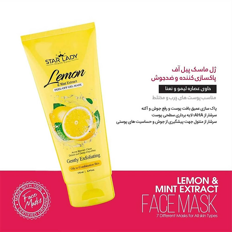 ماسک صورت استارلیدی مدل ذغال فعال به همراه ژل ماسک صورت استارلیدی مدل لیمو حجم 175 میلی لیتر