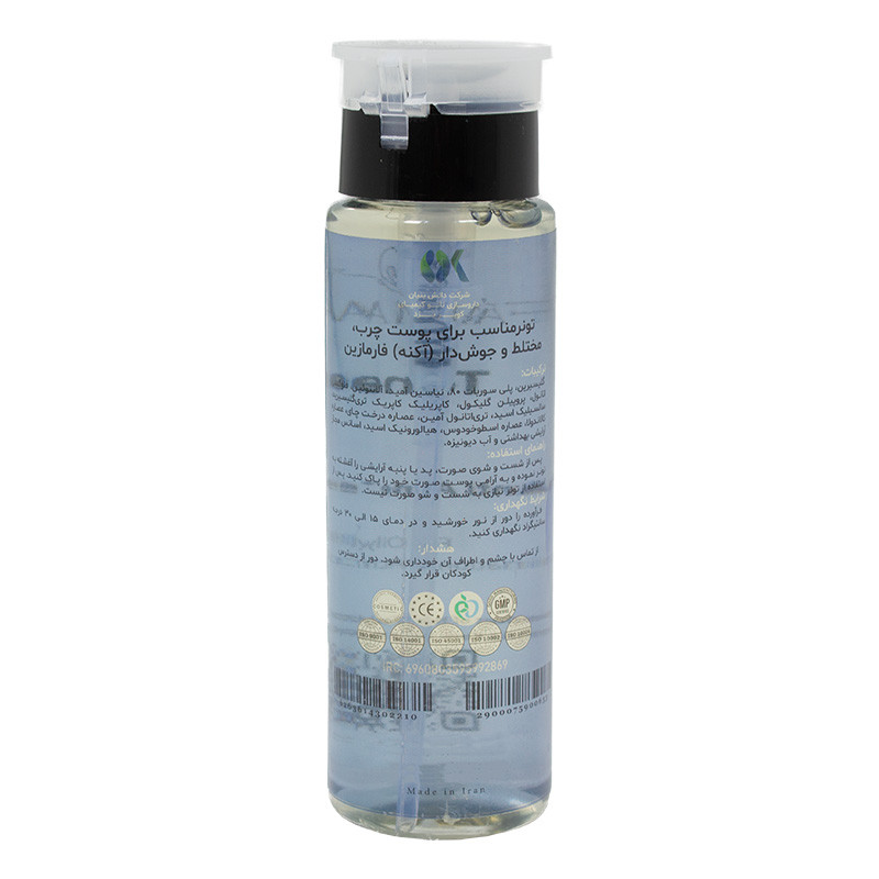 راهنمای استفاده: پس از شست و شوی صورت، پد یا پنبه آرایشی را آغشته به تونر نموده و به آرامی پوست صورت خود را پاک کنید. پس از استفاده از تونر نیازی به شست و شو صورت نیست.