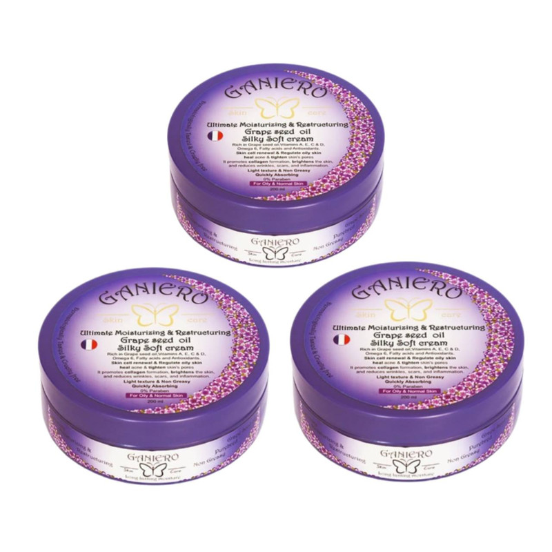 این محصول دارای روغن هسته انگور است که حاوی پلی فنول است که یکی ازکلیدیترین فاکتورهای ضد پیری است، خاصیت آنتی اکسیدانی دارد، متابولیسم سلولی را نرمال میکند، گردش خون زیر پوستی را بهبود میبخشد و موجب کاهش سلولهای مرده سطح پوست میشود. استفاده از مرطوب کننده صورت با مواد مغذی، مانند کرم مرطوب کننده و بازسازی کننده حاوی روغن هسته انگور گانیرو، باعث جلوگیری از پیری زودرس پوست میشود.