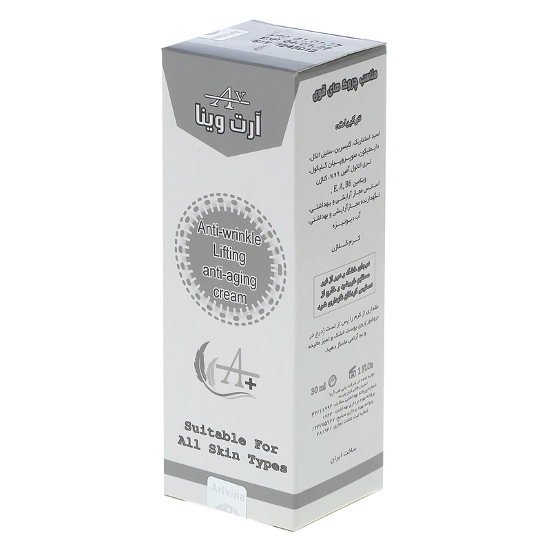 کرم ضد چروک آرت وینا مدل ANTI-WRINKLE مناسب انواع پوست حجم 30 میلیلیتر ، یک محصول ایدهآل برای جوانسازی و بهبود بافت پوست است. این کرم با ترکیبی از ویتامینهای E، B6 و A، بهطور مؤثری به کاهش چین و چروکها و افزایش کلاژن سازی پوست کمک میکند. این کرم مناسب انواع پوست بوده و بهخوبی جذب میشود، بدون اینکه احساس چربی یا سنگینی بر روی پوست ایجاد کند. همچنین، وجود گلیسیرین در فرمولاسیون آن، رطوبت لازم را برای پوست شما فراهم میکند و نرمی و لطافت را افزایش میدهد. با استفاده مداوم از کرم ضد چروک آرت وینا، میتوانید به کاهش خطوط ریز و چین و چروکها امیدوار باشید و پوستی جوانتر و شادابتر تجربه کنید. این محصول، انتخابی مناسب برای افرادی است که به دنبال راهی مؤثر برای حفظ جوانی و زیبایی پوست خود هستند.