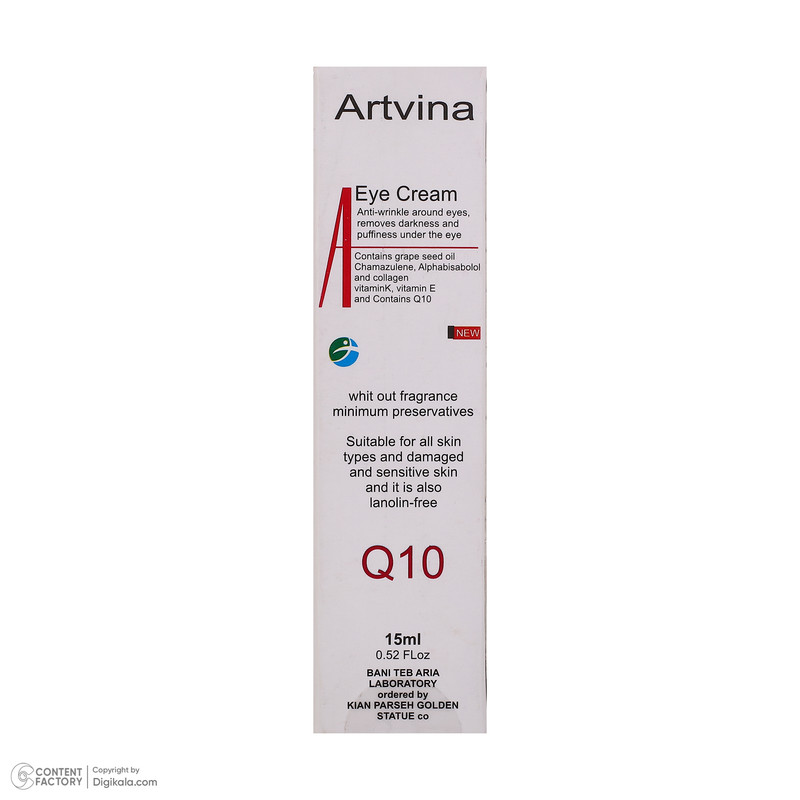 خواص: کرم دور چشم آرت وینا ضد چروک است و باعث از بین رفتن تیرگی و پف زیر چشم میشود.
