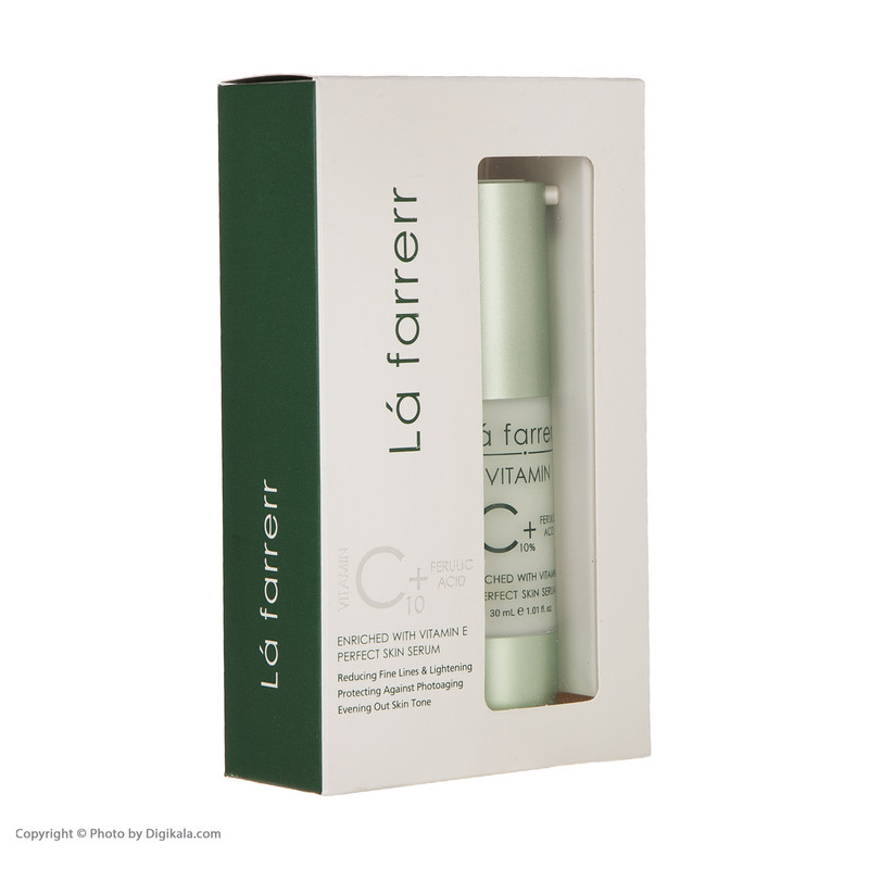 سرم ویتامین سی لافارر یک انتخاب خوب است که با تامین ویتامینهای مناسب، پوست را ترمیم و روشن میکند. محصول سرم پوست لافارر حاوی ویتامین C (آسکوربیک اسید) 10%، ویتامین E (توکوفریل استات) و فرولیک اسید است که با لایهبرداری و جلوگیری از تولید ملانین خاصیت ضد لک (ناشی از افزایش سن، بارداری، آکنه و...) و روشن کنندگی پوست را دارد. استفاده از فرولیک اسید که خود یک آنتی اکسیدان است در کنار ویتامینهای سی و ای، منجر به بهبود عملکرد این ویتامینها در جلوگیری از فعالیت رادیکالهای آزاد شده و از بروز علائم پیری جلوگیری میکند. همچنین این سرم باعث افزایش تولید پروتئینهای کلاژن و الاستین شده و کاهش چین و چروکهای پوست را به همراه دارد. با استفاده از این سرم بهراحتی میتوانید، از ایجاد لکهای تیره، چین و چروک پوست، آکنه و التهاب پیشگیری کنید و لطافت و شادابی پوست خود را حفظ کنید.