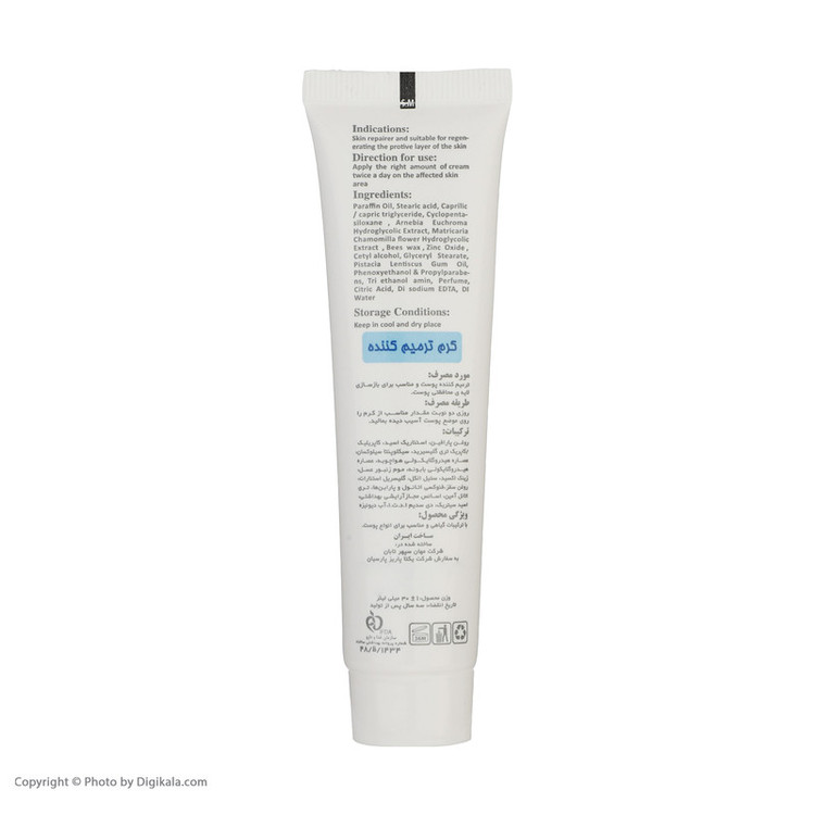 راهنمای استفاده: روزی دو نوبت مقدار مناسب از کرم را روی موضع پوست آسیب دیده بمالید.