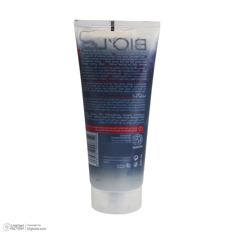 ژل Extra Strong بیول علاوه بر استحکام فوق العادهای که به تارهای مو در کلیه حالتهای دلخواه شما میبخشد ، با تکیه بر پروتیین موجود در آن به ترمیم ساختار مو پرداخته ، کراتین هیدرولیز شده موجود در این ژل آسیبهای ناشی از آلودگیهای محیطی وارد شده بر کوتیکولهای مو (قشای محافظ تارهای مو) را احیا نموده ، زیبایی و استحکام گیسوان را به امغان میآورد.ویتامین B5 علاوه بر حفظ ایمنی تارهای مو ، حجمی کاملاً مناسب بروی گیسوان به ارمغان می آورد .ایجاد دشوارترین حالتها بر روی مو ، با ژل Extra بیول. این ژل قابلیت فیکس نمودن تارهای مو اتوکشی شده و تضمین ایستایی کامل را با توجه به پلیمرهای فعال خود برای شما به ارمغان می آورد .
