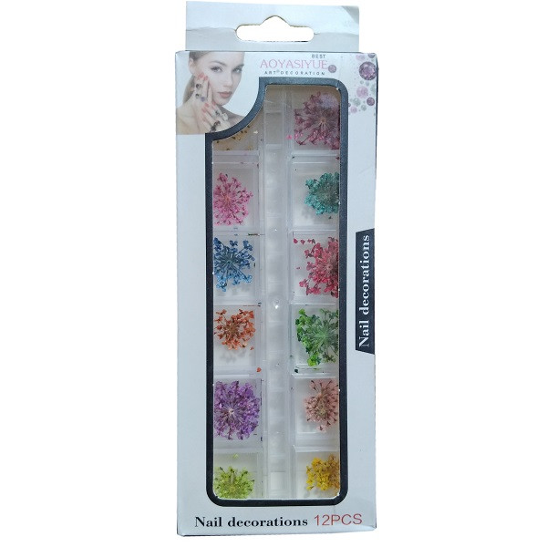 گل خشک دیزاین ناخن که یکی از زیبا ترین طرح های دیزاین ناخن می باشد کیفیت این محصول بسیار بالا می باشد و هنگام دیزاین می توانید بدون نگرانی از آن استفاده نمایید.پک 12 عددی گل خشک، شامل 12 رنگ متفاوت در سایز های مختلف و مناسب هر سلیقه و فصلی می باشد که برای کاشت از آن ها استفاده می شود. برای ناخنکاران حرفه ای استفاده از این پک با توجه به حجم و قیمتی که دارد کاملا مقرون به صرفه می باشد. مزیتی که این گل خشک نسبت به سایر گل خشک ها دارد در بسته بندی این محصول می باشد که بعد از استفاده از گل خشگ ها می توانید از جعبه آن به عنوان جعبه دیزاین 12 عددی استفاده نمایید.