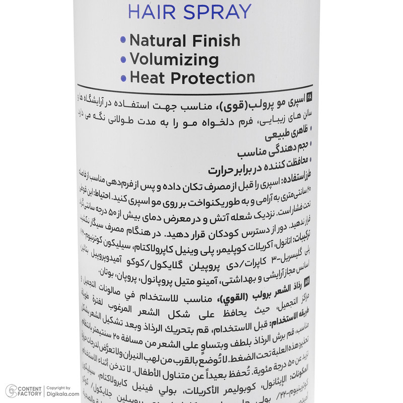 قابلیتهای اسپری مو: بدون چسبندگی , بدون ایجاد سفیدک