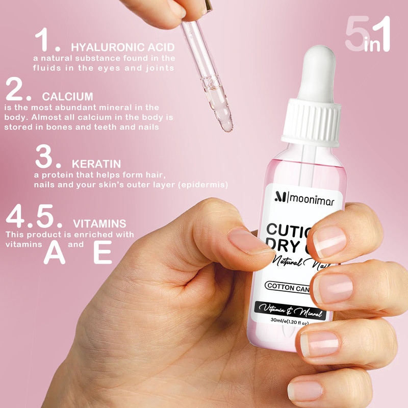 روغن خشک کوتیکول moonimar مخصوص کوتیکول اطراف ناخن است، ترکیبات این روغن به شکلی است که به طور کامل جذب میشود و اثری از چربی روی پوست، ناخن و کوتیکول باقی نمیگذارد، به همین دلیل به آن روغن خشک گفته میشود، کوتیکول دور ناخن ممکن است بر اثر عدم مراقبت یا در حین مانیکو و کاشت آسیب ببیند، این روغن مرطوب کننده و درمان کننده ی کوتیکول آسیب دیده دست است و علاوه بر آن به دلیل داشتن کلسیم و کراتین ناخن را نیز تقویت میکند و به استحکام ناخن کمک می کند. اگر اهل جویدن ناخن و اطراف آن هستید این محصول می تواند زیبایی را به دست های شما بازگرداند. روغن خشک کوتیکول moonimar روغنی است که از ناخن های شما مراقبت می کند. در ترکیبات این روغن از ویتامین E و A و همینطور کراتین و هیالورونیک اسید و کلسیم استفاده شده است که باعث مراقبت و خشک نشدن ناخن شما می شود. این روغن کوتیکول ناخن را نرم کرده و با این کار مانع از ترک خوردن ناخن ها می شود. ترمیم کننده بافت های آسیب دیده پوست می باشد. مانع پوست پوست شدن اطراف ناخن می شود. این روغن علاوه بر نرم کردن و ترمیم پوست اطراف ناخن دارای خواص آنتی باکتریال است و دارای بوی بسیار مطبوع میباشد