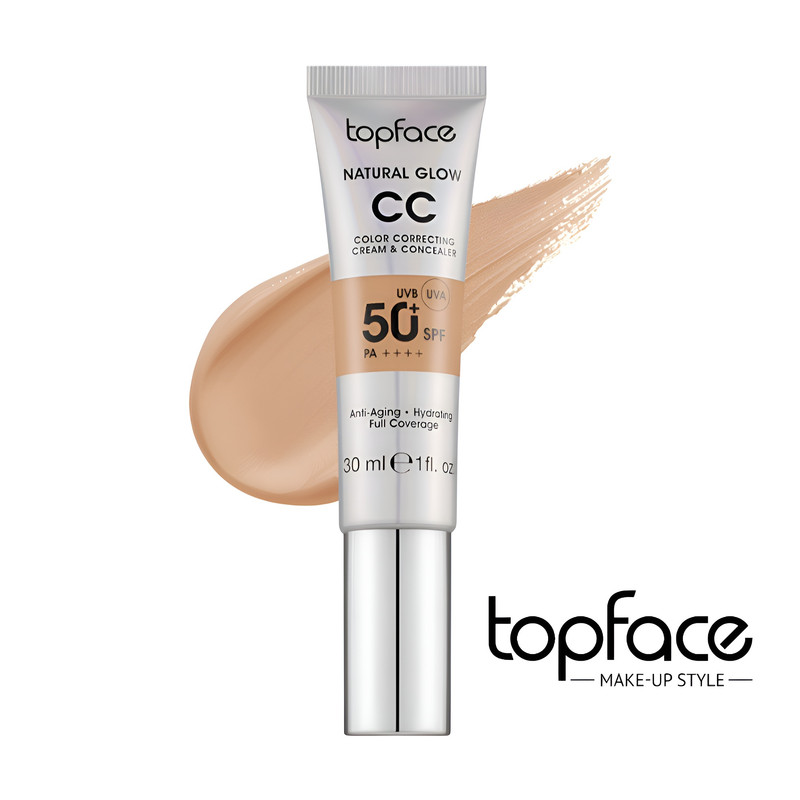 کرم پودر CC و کانسیلر تاپفیس مدل Natural Glow، محصولی چندکاره با فرمولاسیونی سبک و مغذی است که با هدف یکنواختسازی رنگ پوست، پوشاندن نواقص و ایجاد جلوهای طبیعی و درخشان طراحی شده است. این محصول ترکیبی از مزایای کرم پودر، پرایمر، ضد آفتاب و کانسیلر را در یک بسته ارائه میدهد تا روتین آرایشی شما را سادهتر و مؤثرتر کند.