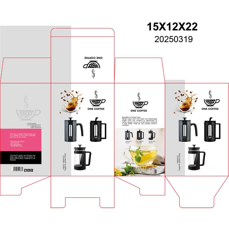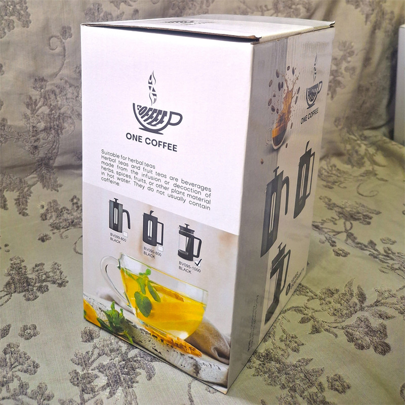 فرنچ پرس وان کافی از قدیمی ترین و محبوبترین و برترین برندهای موجود در بازار، وسیله ای با کیفیت و با سرعت عمل بالا جهت آماده کردن قهوه و همچنین دمنوش بوده است. فرنچ پرس وان کافی انتخاب همیشگی دوستداران باسلیقه قهوه و دمنوش است. این محصول با مدل BV090-800 با حجم 800میلی لیتر و دارای بدنه ای از جنس پیرکس های برو سیلیکیت مقاوم به حرارت و سه برابر ضخیم تر از سایر فرنچ پرس های موجود در بازار است، که این خود باعث طول عمر این کالا می شود.وان کافی شما را به لذت بردن از نوشیدن یک قهوه یا دمنوش خاطره انگیز دعوت میکند.کاردلینو شما به دمنوش گرم با محصولات وان کافی دعوت میکند