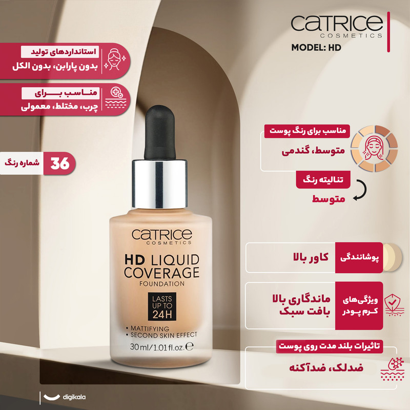 کرم پودر کاتریس مدل HD شماره 036 حجم 30 میلی لیتر