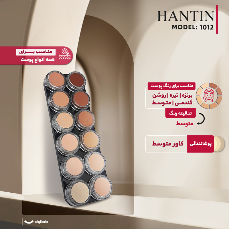 پالت فون فشرده هانتین یک محصول حرفهای و چندکاره برای افرادی است که به دنبال پوششی کامل و بینقص هستند. این پالت با رنگهای کاربردی خود برای انواع پوستهای روشن تا تیره مناسب بوده و بهراحتی میتواند جای جوش، ککومک، لکهای پوستی یا ناهماهنگیهای رنگی را محو کند. بافت نرم و سبک این کرم بهآسانی روی پوست پخش شده و پوششی صاف، یکنواخت و مات ایجاد میکند که در عین ماندگاری بالا هیچگونه سنگینی یا خستگی به پوست وارد نمیکند. ترکیبات گیاهی موجود در این محصول علاوه بر مراقبت از پوست، ظاهری طبیعی و شاداب به چهره میبخشند. این پالت برای پوشاندن تتو، ماهگرفتگی و حتی تفاوتهای شدید رنگی نیز کارایی فوقالعادهای دارد. همچنین در تکنیک کانتورینگ بسیار پرطرفدار است؛ رنگهای روشن آن برای برجستهسازی قسمتهایی مانند گونه یا زیر چشم و رنگهای تیره برای ایجاد عمق در نواحی مانند پیشانی یا غبغب کاربرد دارند.