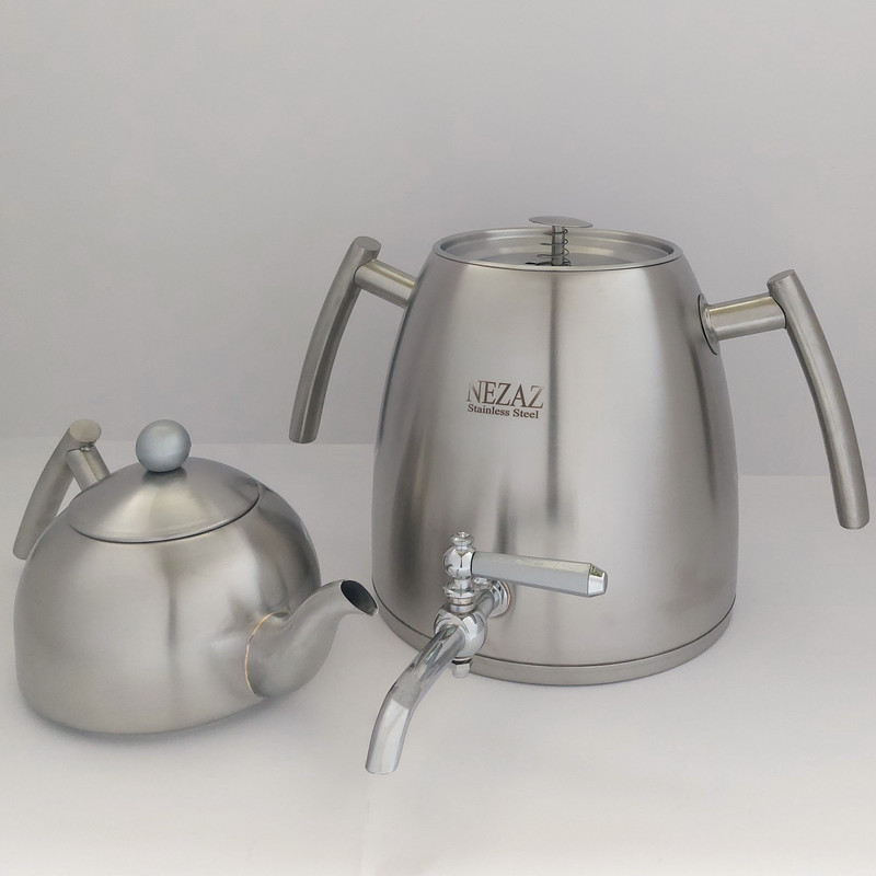 ست کتری و قوری نزاز مدل هرمی تمام استیل