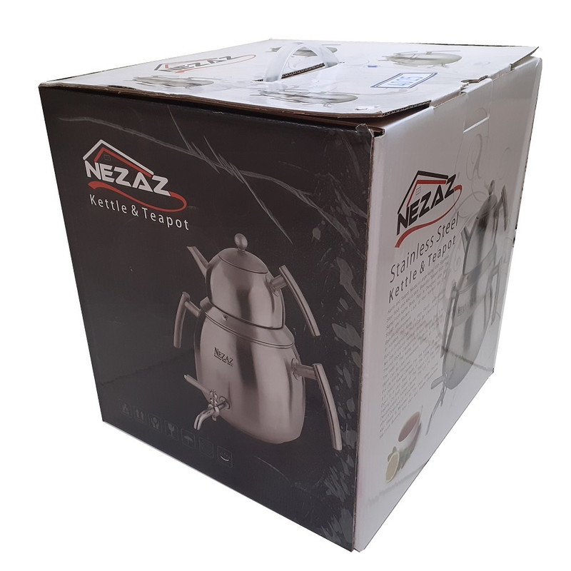 شرکت نزاز برای تولید کتری های خود از ورق استیل ضد زنگ با نیکل 304 با ضخامت 1 میلی متر و کفه ی چدنی چندلایه استفاده می کند که این کتری را در برابر زنگ زدگی و دماهای بسیار بالا محافظت می کند. جنس کف کتری چدنی می باشد که حرارت را به خود جذب کرده و بطور یکنواخت در کف کتری پخش می کند و سبب جوشیدن سریعتر آب می شود. دستگیره ها از جنس استیل ضدزنگ و دارای طراحی ارگونومیک بوده و با اتصال جوشی مناسبی به بدنه متصل شده و در دماهای بالا از اطمینان بیشتری نسبت به دستگیره های باکالیت برخوردار است. داخل کتری با استفاده از ماشین آلات به روز، مضرس و شیاردار شده تا به خوبی رسوبات و املاح آب را به خود جذب کند. کتری نزاز در مقایسه با سایر کتری های شیردار، دارای شیر بلندتری می باشد، که شما رو از جابجا کردن کتری روی اجاق گاز آسوده می کند و پرکردن فنجان ها را برای شما راحت تر میکند.