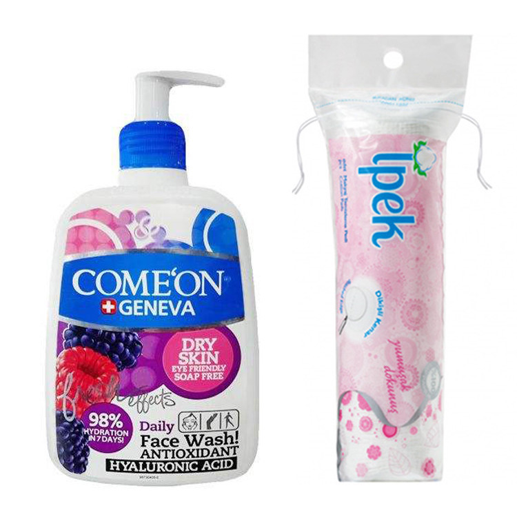 ژل شستشو صورت کامان مدل Dry Skin حجم 500 میلی لیتر به همراه پد پاک کننده آرایش ایپک بسته 70 عددی