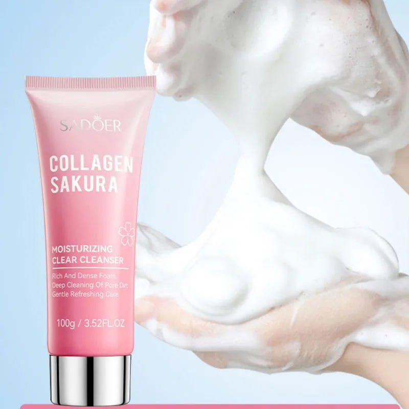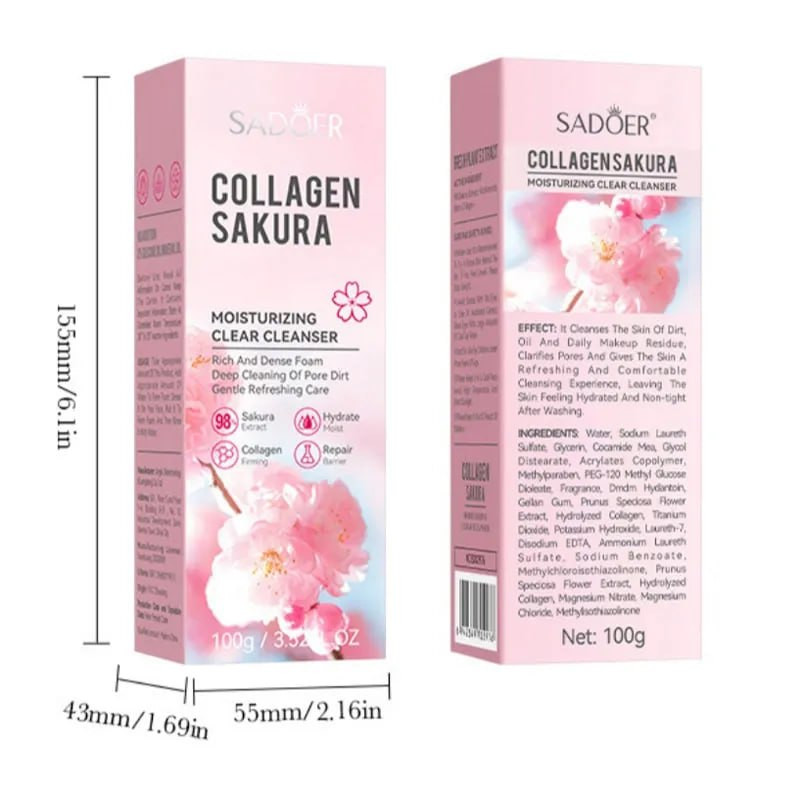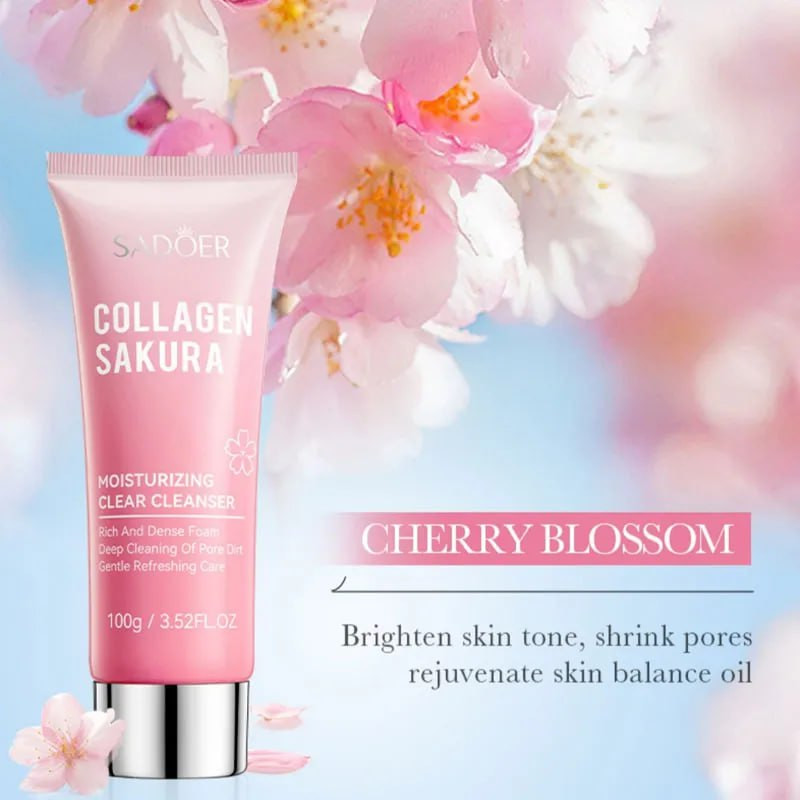 فوم شستشو صورت تیوپی کلاژن و ساکورا سادور جوانساز و آبرسان قوی پوست است و بافت سبکی دارد. این فوم روشن کننده و جوانساز ساز سادور، حاوی مقادیر بسیار بالایی از کلاژن جهت جوانسازی و رفع چین و چروک های پوست و عصاره شکوفه های گل ساکورا می باشد. کلاژن و ساکورا (شکوفه گیلاس) هر دو فواید زیادی برای پوست دارند و میتوانند به جوانسازی و بهبود سلامت پوست کمک کنند. کلاژن یک پروتئین ساختاری اصلی در پوست است که به حفظ استحکام و انعطافپذیری آن کمک میکند و از ایجاد چین و چروک جلوگیری میکند. عصاره ساکورا دارای خواص آنتیاکسیدانی و ضد التهابی است که میتواند به روشن شدن و نرمی پوست کمک کند. فوم شستشوی صورت کلاژن و ساکورا سادور، علاوه بر کلاژن و عصاره ساکورا، حاوی گلیسیرین و ویتامین E نیز هست که همگی به حفظ رطوبت و شادابی پوست کمک میکنند.