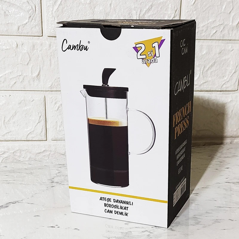 قهوه سازهای فرنچ پرس از گذشتههای دور وسیلهای ساده و با سرعت عملکرد بالا جهت آماده کردن یک فنجان قهوهی دم شده بودهاند. برند ترکیه ای CAMBU دارای طیف گستردهای از این نوع قهوه سازها است. دستگاه فرنچ پرس DEMLIK کد داری طرحی جذاب و چشم نواز بوده و قابلیت آماده سازی تا سه فنجان دمنوش گیاهی یا قهوه را برای شما فراهم میکند.بدنه این فرنچ پرس از بلور بروسیلیکات که بسیار ظریف، شفاف و با کیفیت بوده و در مقابل حرارت از مقاومت بسیار بالایی برخوردار می باشد ساخته شده است و قطر دهانه آن حدود 8 و ارتفاع آن 17 سانتی متر می باشد.درب فوقانی این ظرف از پلاستیک با کیفیت و میله عمودی و فیلتر داخلی این فرنچ پرس از استیل ضد زنگ ساخته شده و با واشر سیلیکونی اطراف آن کاملا فیت با بدنه شیشه ای طراحی شده است که باعث می شود تا کمترین میزان رسوبات درون نوشیدنی صاف شده وارد شود.از این وسیله برای آماده سازی انواع دمنوش و چای گیاهی نیز میتوان استفاده کرد.کافیست مقدار لازم از قهوه یا دمنوش را در قهوه ساز بریزید و به میزان لازم آب جوشیده به آن اضافه کنیددرب را طوری بگذارید که فیلتر روی سطح مایع قرار بگبرد پس از 3 تا 5 دقیقه دسته فیلتر را تا انتها به سمت پایین فشرده و نوشیدنی خود را میل بفرمایید.