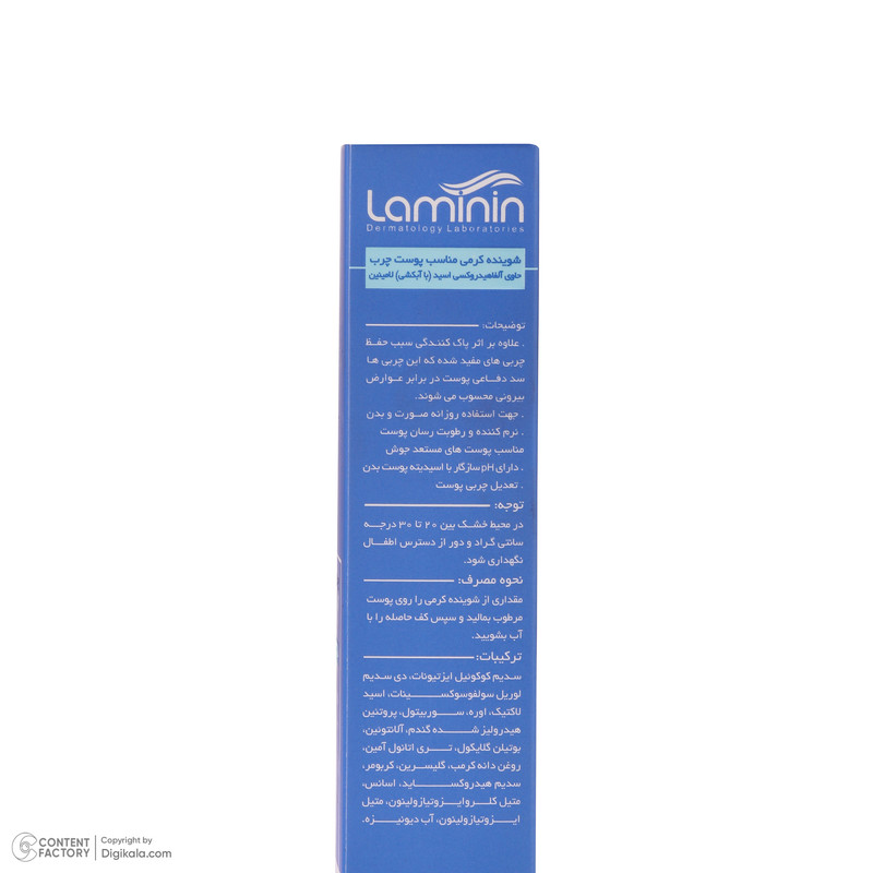 کرم شستشوی صورت رطوبت رسان لامینین مدل AHA مناسب پوست چرب حجم 200 میلی لیتر