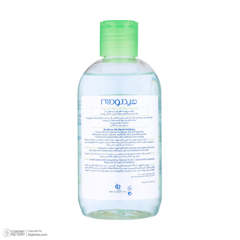 محلول پاک کننده آرایش صورت هیدرودرم مدل برگ مناسب پوست های حساس حجم 250 میلی لیتر