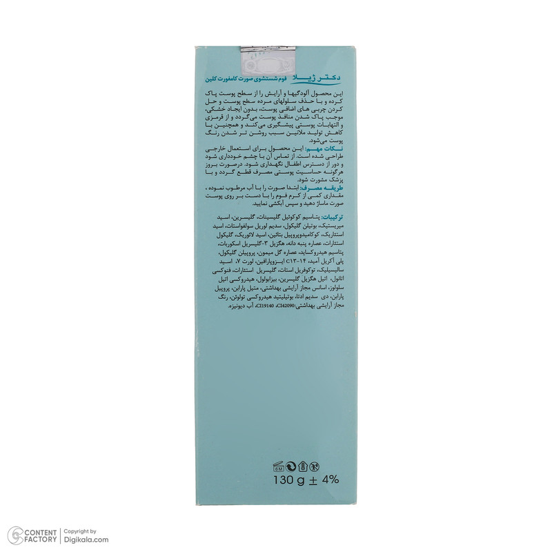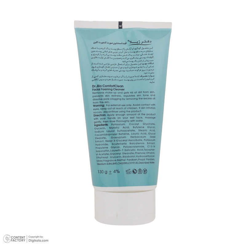 فوم پاک کننده صورت کامفورت کلین دکتر ژیلا چربی های اضافی سطح پوست را در خود حل کرده و بدون اینکه باعث خشکی پوست شود، پوست را بطور کامل از آلودگی ها پاک می کند.