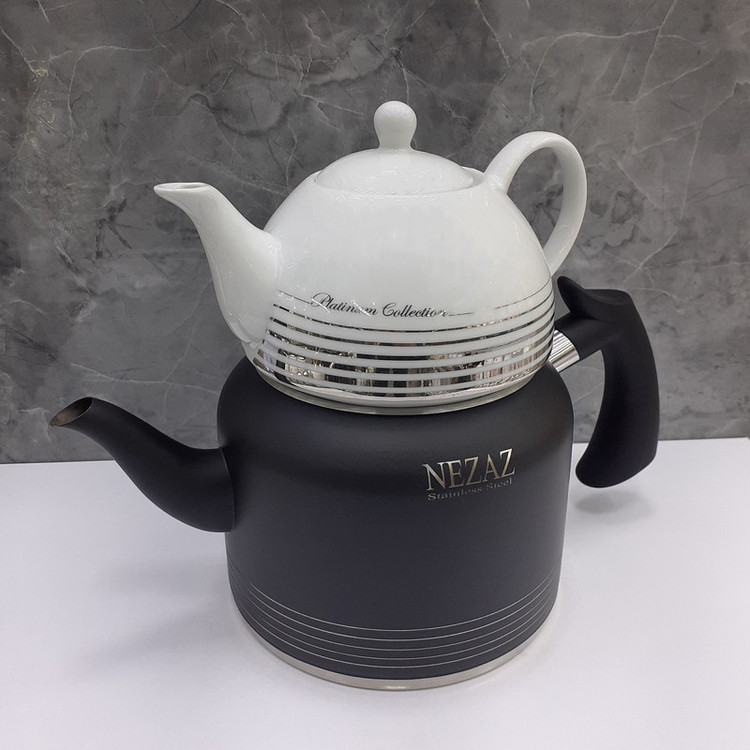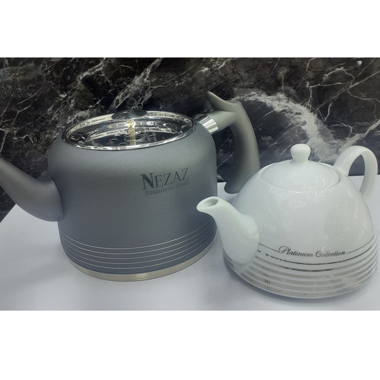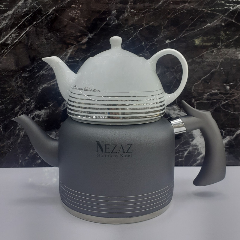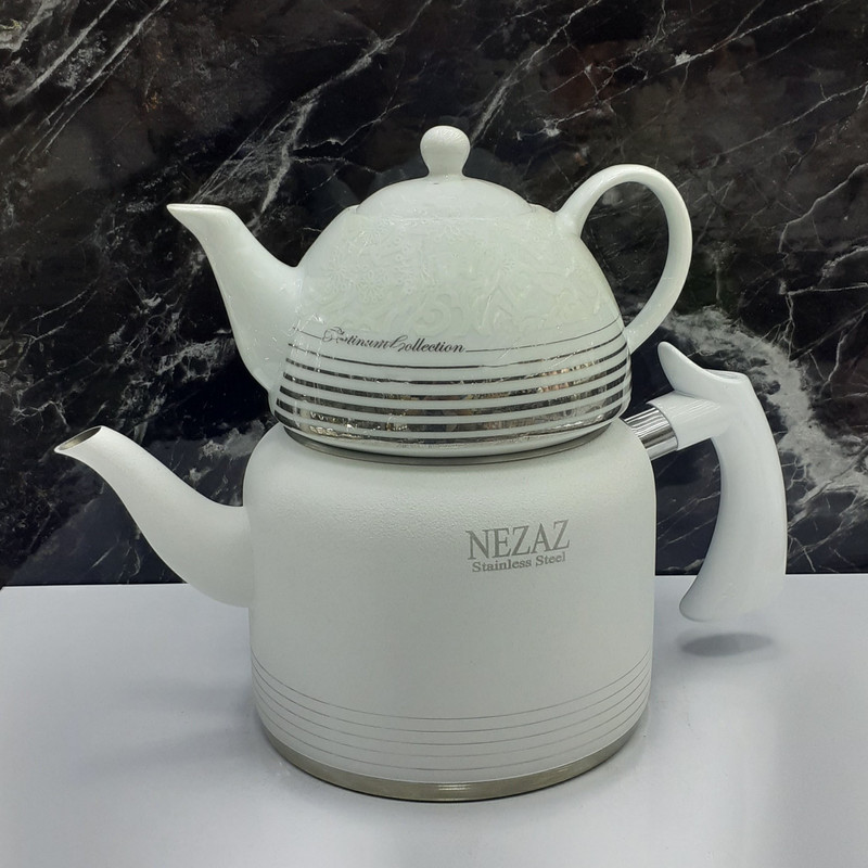 ست کتری و قوری نزاز مدل لوله دار طرح رنگی