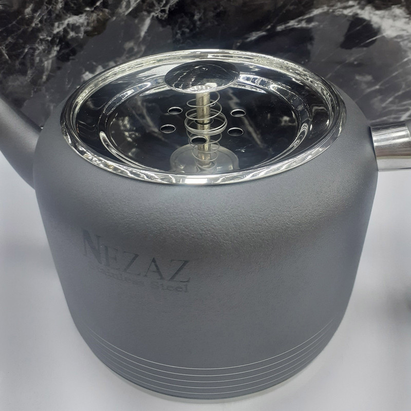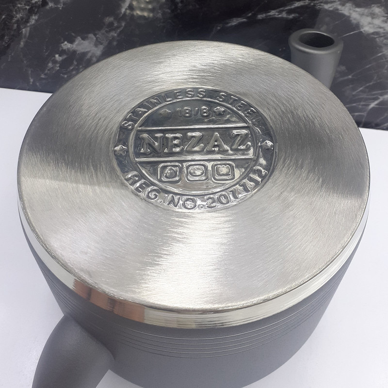 شرکت نزاز برای تولید این کتری از ورق استیل ضد زنگ با نیکل 304 با ضخامت 1 میلی متر و کفه ی چدنی چندلایه استفاده می کند که این کتری را در برابر زنگ زدگی و دماهای بسیار بالا محافظت می کند.