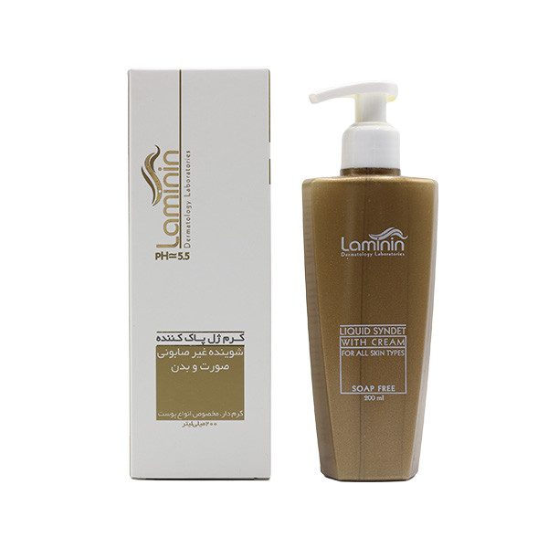 کرم ژل پاک کننده کرم دار لامینین شوینده ای غیر صابونی با قدرت پاک کنندگی بالا می باشد، که با حفظ تعادل آب و چربی پوست از ایجاد خشکی و کشیدگی پوست جلوگیری می نماید و سبب بازسازی پوست می شود. pH این پاک کننده 5.5 بوده و کاملا سازگار با pH طبیعی پوست می باشد. کرم ژل پاک کننده کرم دار لامینین حاوی مواد مرطوب کننده و پیشگیری کننده از خشکی پوست می باشد. فرم لوسیون این محصول سهولت استفاده از آن را فراهم می آورد. یکی از مزایای اصلی لوسیون حفظ تعادل رطوبت پوست می باشد. کرم ژل پاک کننده کرم دار لامینین جایگزین بسیار مناسب صابون جهت شستشوی پوست صورت و بدن می باشد.
