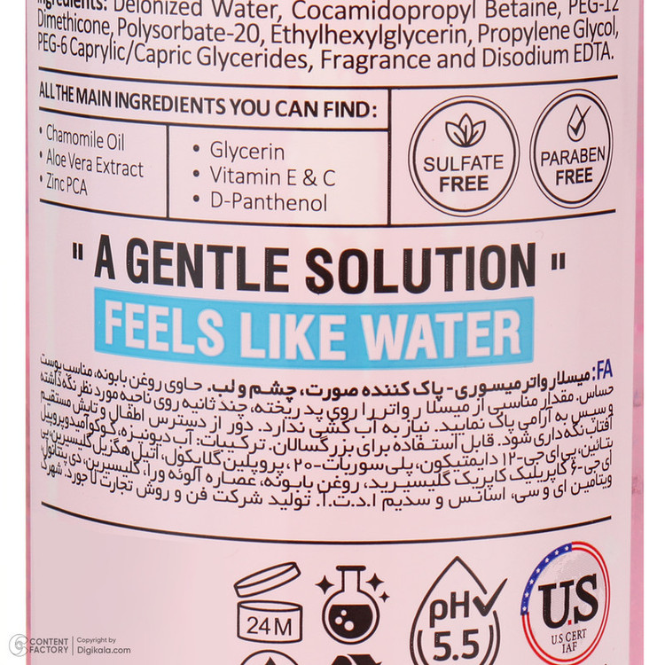 نوع پاک کننده آرایش صورت : میسلار واتر