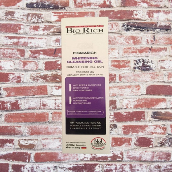 ژل شستشوی صورت بایوریچ یک نوع ژل روشن کننده و ضد لک با فرمولاسیونی بسیار سبک و رایحه ای دلنواز محصولی متفاوت برای پاک سازی و افزایش درخشندگی پوست میباشد. این محصول شوینده ای غیر صابونی مناسب برای پوستهای دارای لک و با مستعد بروز میباشد. این محصول حاوی ترکیباتی مانند آلفا هیدروکسی اسید و آزلانیک اسید و کوجیک اسید وعصارهای شیرین بیان و لیمو و بابونه میباشد. این محصول فرموله شده در کارخانه JOJO آلمان میباشد.