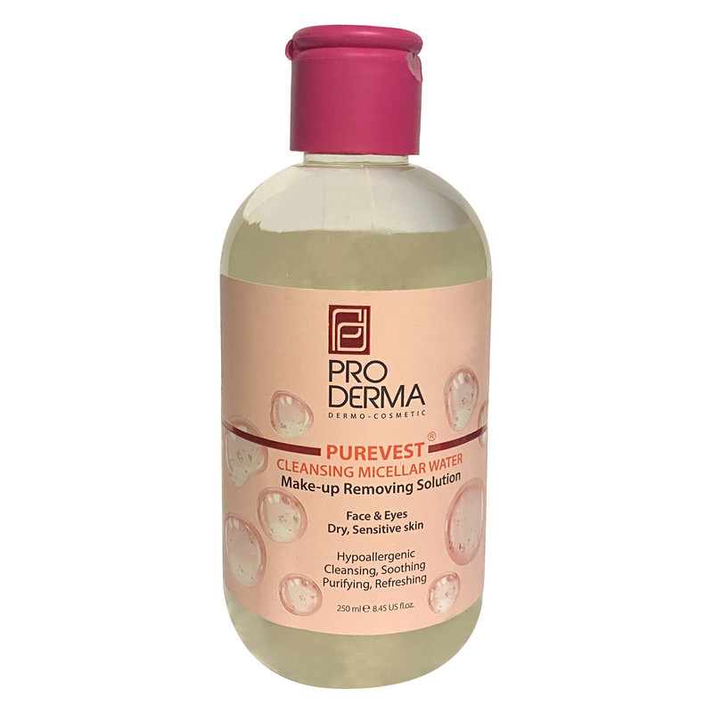 محلول پاک کننده آرایش پوست خشک و حساس پرودرما محصولی بدون پاک کنندههای سولفاتی و یونی است. از این فرآورده به منظور پاک کردن مواد آرایشی و حذف آلودگیهای سطحی پوست (چربی، گرد و خاک و…) استفاده میشود.
