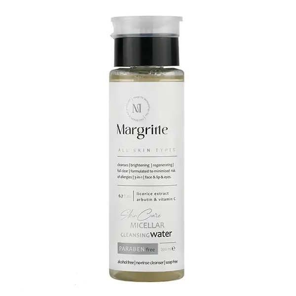 میسلار واتر 3 در 1 روشن کننده انواع پوست مارگریت، پاک کننده مواد آرایشی، گرد و غبار و آلودگی از سطح پوست میباشد. احیا کننده و التیام بخش پوست است و افراد با انواع پوست ها میتوانند از آن استفاده کنند. استفاده از این محصول حساسیتی برای پوست ایجاد نمیکند و فاقد پارابن، مواد صابونی، الکل و سولفات است. پس از استفاه از این محصول نیازی به شستشوی صورت نمیباشد.
