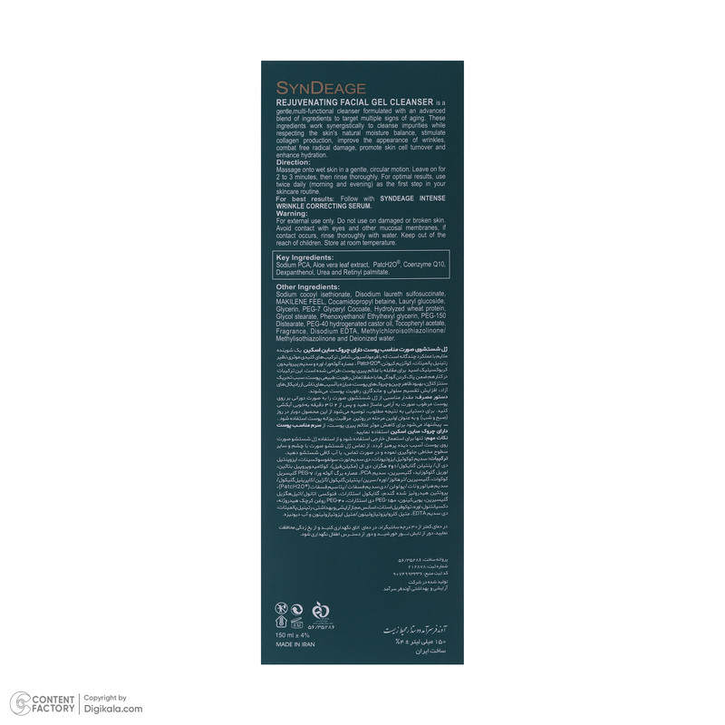 ژل شست‌وشوی صورت ساین اسکین مدل SYNDEAGE مناسب برای انواع پوست حجم 150 میلی‌لیتر