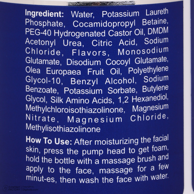 راهنمای استفاده : مقداری از فوم را با استفاده از برس سیلیکونی روی صورت خود ماساژ دهید و سپس آبکشی کنید.