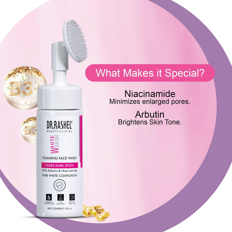 فوم شستشو صورت ضد لک دکتر راشل مدل نیاسینامید و آربوتین مناسب برای انواع پوست حجم 115 میلی لیتر