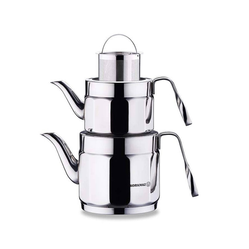 korkmaz nostalgia maxi A229 دارای حجم کلی 3.4 لیتر است که کتری آن 2.2 لیتر و قوری 1.2 لیتر ظرفیت دارند و مناسب برای خانواده های پر جمعیت و مهمانی و دورهمی های شماست. کتری و قوری کرکماز A229 قوری این سرویس دارای تفاله گیر استیل می باشد که ضد زنگ بوده و کتری دارای درب مشبک و پایه کپسولی سه لایه است و به لطف سیستم پایه خورشیدی که دارد بالاترین مقدار حرارت را انتقال می دهد و در زمان و انرژی صرفه جویی خواهد شد و سریع تر آب را به جوش می آورد و بر روی انواع اجاق ها از جمله القایی قابل استفاده است.