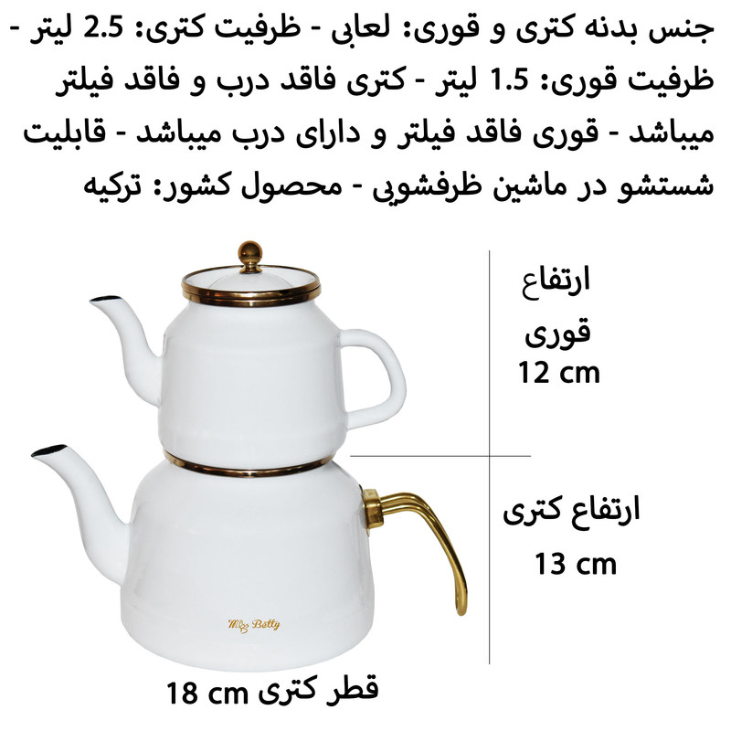 سایر توضیحات: مبدا کالا : کشور ترکیه برند: miss Betty جنس: لعاب ضخیم کیفیت عالی قابل شستشو در ماشین ظرفشویی برای ماندگاری طولانی شستشو با دست توصیه میشود عدم زنگ زدگی