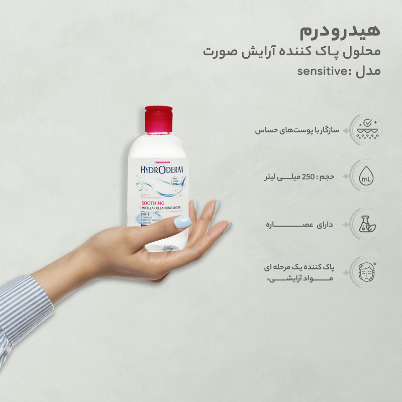 محلول پاک کننده آرایش صورت هیدرودرم مدل soothing مناسب پوست های حساس حجم 250 میلی لیتر