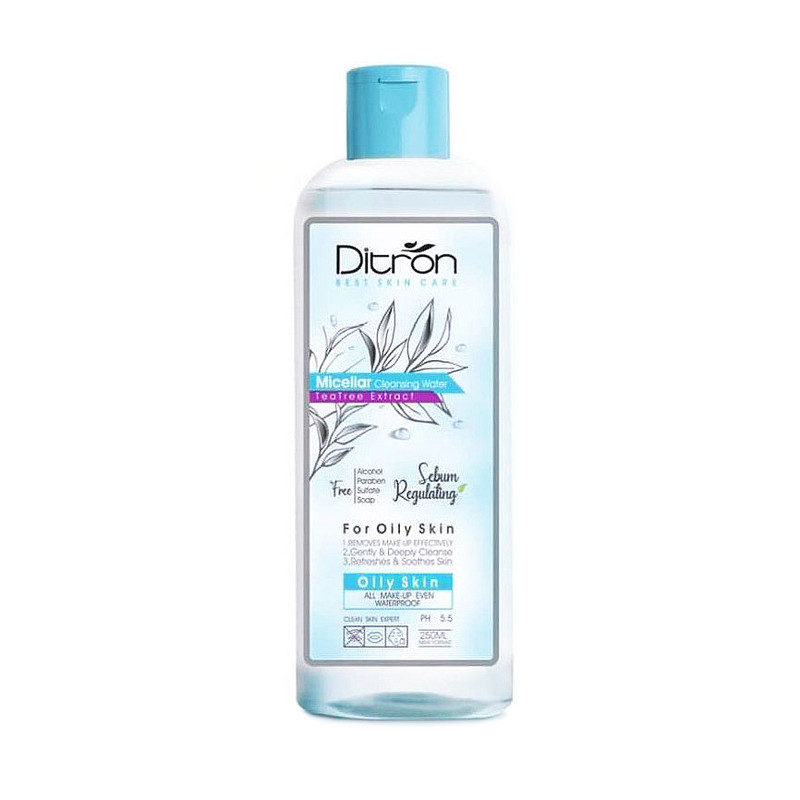 محلول پاک کننده آرایش صورت و لب (میسلار واتر) مناسب پوست چرب و مستعد آکنه دیترون حاوی مقادیر فراوان ترکیبات عصاره درخت چای به منظور عمیق ترین پاک کنندگی ممکن پوست جهت نفوذ به منافذ و لایه های پوستی نه تنها برای پاک کردن پوست از غلیظ ترین آرایش ها و حتی مواد آرایشی ضد آب ایده آل بوده بلکه به واسطه فرمولاسیون منحصر به فرد خود به آبرسانی، نرم، صاف، درخشان، شاداب سازی و جلوگیری از جوش و آکنه نیز می پردازد. فرمولاسیون فاقد هر گونه ترکیبات مضر از جمله انواع نمک، سولفات، پارابت، الکل و ترکیبات صابونی باعث شده تا استفاده از این محصول هیچ گونه عوارضی را برای پوست نداشته باشد. همچنین وجود ترکیباتی نظیر عصاره درخت چای استرالیایی، پروتئین بابونه و آلوئه ورا به ترمیم و احیای بافت پوستی نیز بیانجامد. عصاره درخت چای استرالیایی به کار رفته در میسلار دیترون با نفوذ به عمیق ترین لایه های پوستی ضمن بر طرف کردن چربی و آلودگی های اضافی مواد آرایش، چربی اضافی بافت پوست را نیز پاک سازی کرده و با تنظیم غدد چربی ترشح چربی پوست را کنترل کرده تا چربی پوست در حالت ایده آل بالانس شده و نه به خشکی و نه به چربی پوست منجر شود. عصاره درخت چای به کار رفته در این محصول با نفوذ عمیق به منافذ پوستی بافت زیر پوستی را از چربی خالی کرده تا خیالتان جهت عدم بروز هرگونه جوش و آکنه راحت باشد. بابونه ترکیب شده در آن نیز با جذب پوست به منافذ باز پوستی نفوذ کرده و پس از آن که عصاره درخت چای این منافذ را به طور کامل پاکسازی نمود با لیفت پوست به جمع کردن منافذ باز پوستی می پردازد. ترکیب بابونه با جمع کردن پوست به حد ایده آل باعث بسته شدن مجرا های تنفسی پوست نشده و با ایجاد حداکثر لیفت ممکن شرایط را برای احیای، اکسیژن رسانی و جوان سازی پوست محیا می سازد. در آخر نیز آلوئه ورا به آبرسانی کامل پوست پرداخته تا به نحو بارزی پوستی صاف، نرم، شفاف، درخشان، با نشاط، جوان و مخملی داشته باشد. پاک کننده عمیق آرایش صورت و لب دیترون مناسب پوست چرب حاوی عصاره درخت چای، بابونه و آلوئه ورا پی اچ پوست را تنظیم نموده و از پوست در برابر انواع آلودگی، رادیکال های آزاد، پرتوهای مضر خورشید، UV ، خشکی، جوش، آکنه، چربی و مواد آرایش محافظت مینماید.