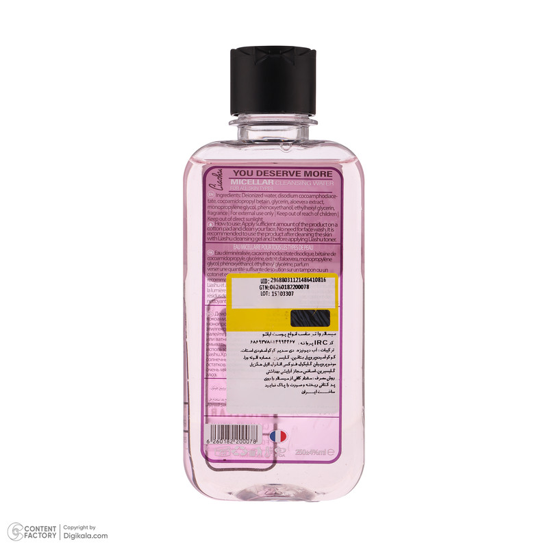 میسلار واتر لیاشو، یک محلول پاک کننده آرایشی قوی برای انواع پوست است که تمام آلودگیها، چربیهای اضافی پوست و مواد آرایشی را به صورت عمقی از روی سطح پوست پاک میکند. فرمولاسیون میسلار واتر، از میسلها یا ذرات روغنی تشکیل شده است. ترکیبات رطوبت رسان و مغذی برای پوست در میسلار واترها، از خشک شدن پوست پس از پاک کردن آرایش جلوگیری میکند. این محصول ویژه، مناسب برای پاک کردن مواد آرایشی کل صورت بوده و میتوانید از آن برای تمیز کردن چشمها نیز استفاده کنید. وجه تمایز این پاک کننده آرایشی کاربردی با دیگر محصولات، عدم نیاز به شستشو پوست پس از استفاده است اما بهتر است برای اطمینان از تمیز شدن پوست، پس از پاک کردن آرایش، پوستتان را به کمک یک شوینده مناسب بشویید. فرمولاسیون ملایم میسلار واترها، مناسب برای استفاده انواع پوست میباشد.میسلار واتر لیاشو این امکان را برای شما به ارغوان می آرد تا پوستی سالم و زیبایی را با رعایت روتین صحیح و منظم داشته باشید.