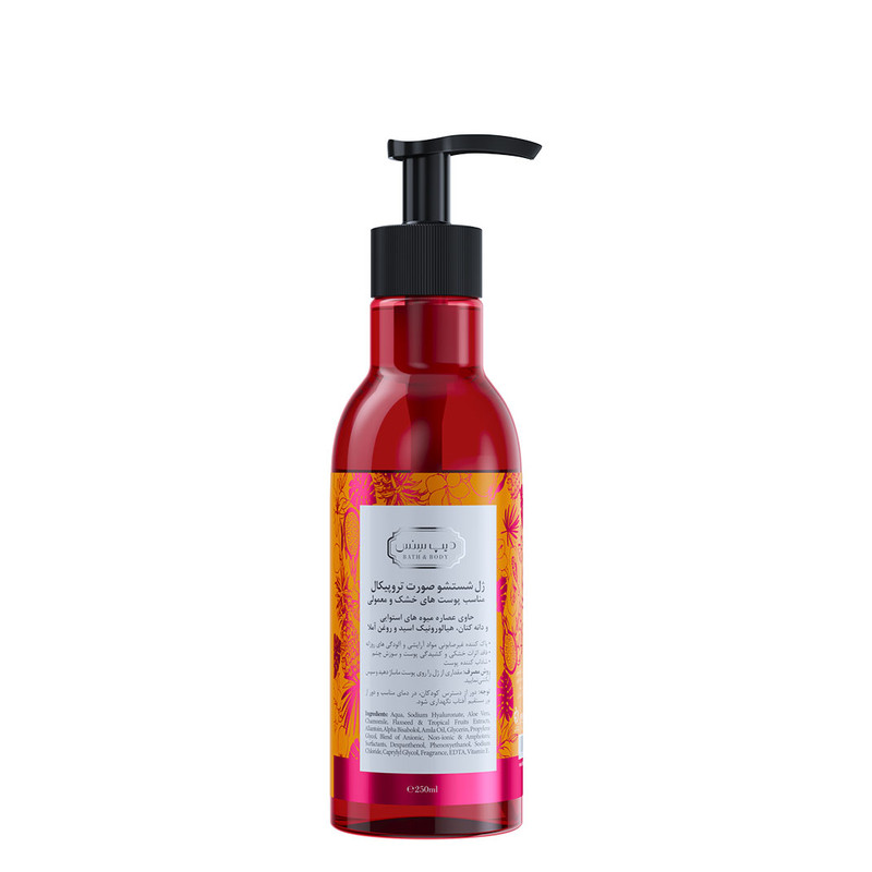 ژل شستشو صورت دیپ سنس مدل میوههای استوایی حجم 250 میلیلیتر میتواند به دلیل داشتن هیالورونیک اسید پوست خشک را آبرسانی کند و قدرت پاککنندگی بسیار بالایی در برابر آلودگیها دارد.